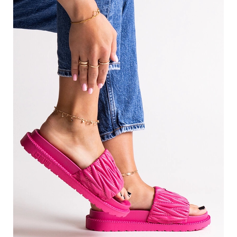 Růžové žabky s libolovou velkou hvězdou NN274A749 jsou perfektní volbou pro letní dny, kdy se Comfort setká s módním designem. Tyto žabky jsou vyrobeny z flexibilní gumy a zaručují perfektní fit a pohodlí nošení, což je nutné v každém letním šatníku. Jejich intenzivní odstín Fuchsie upoutal oko a přidává lehkost ke jakýmkoli stylizacím.