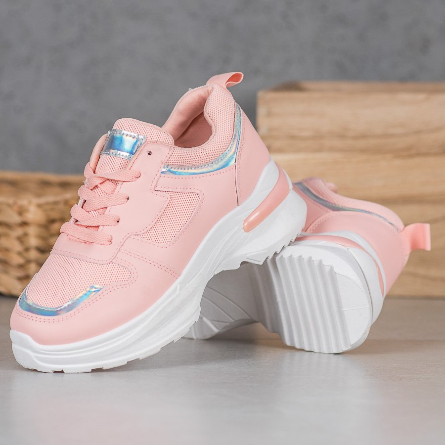 SHELOVET SHELOVET Růžové tenisky s efektem holo růžový