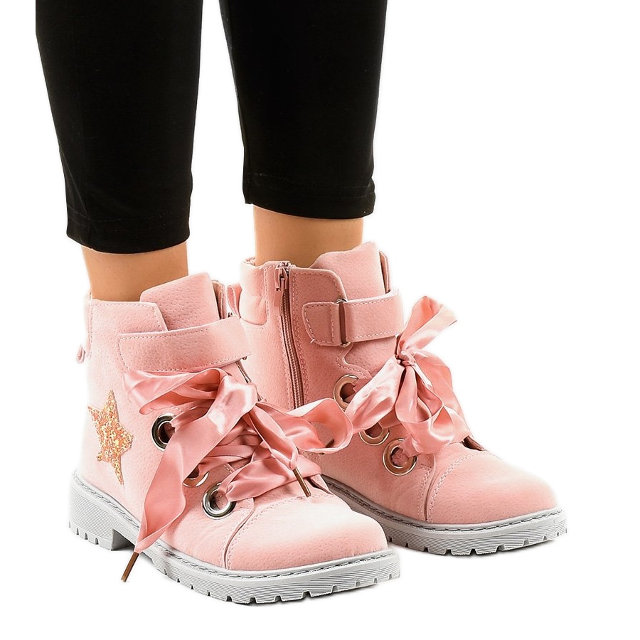 Tyto boty vyrobené z vysoce kvalitní ekologické kůže se vyznačují pevnou konstrukcí a atraktivním vzhledem. Ozdobná hvězda umístěná na boku svršku dodává jedinečný styl. Mají zapínání na zip a ozdobné stuhové šněrování, což umožňuje jejich snadné přizpůsobení noze.