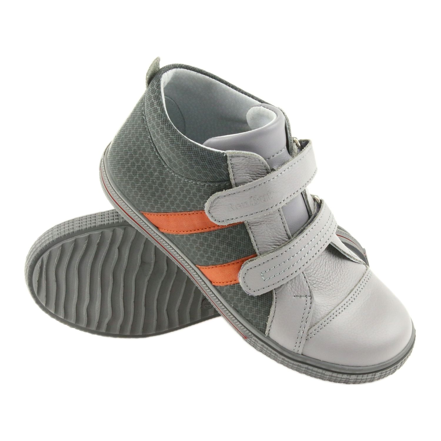 Ren Shoe Boys 4275 Popiel/Orange - pevná, pohodlná a bezpečná obuv pro aktivní děti. Neizolovaný model, vyrobený z přírodní kůže a textilního materiálu, vybavený praktickým uzavřením suchého zipu a zobrazeným logem výrobce.