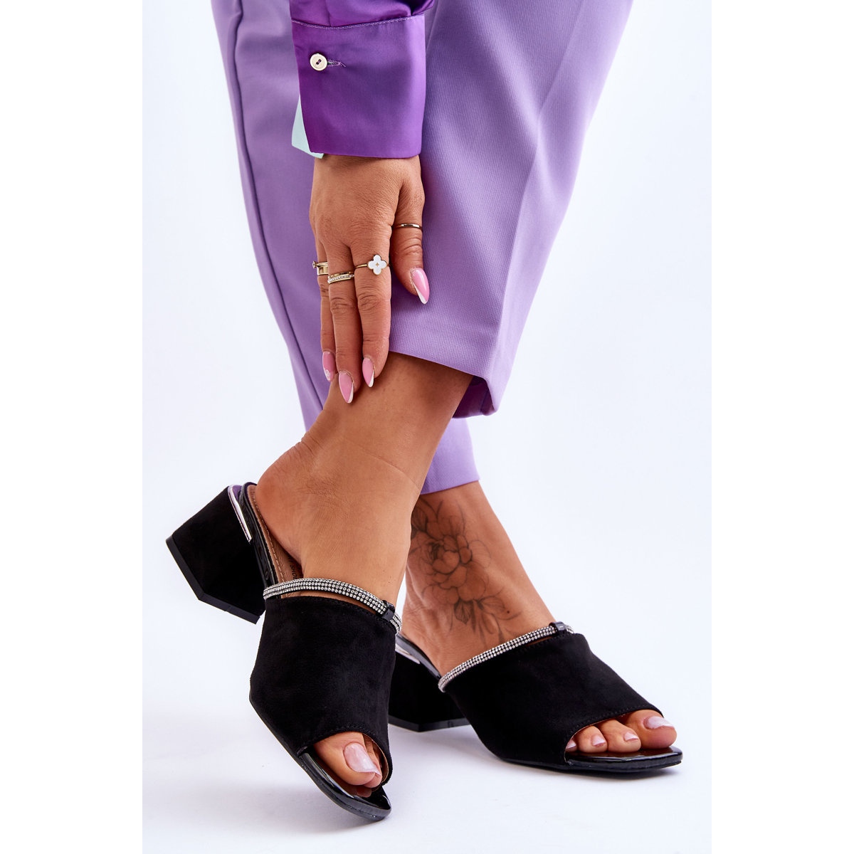 S.Barski S.Barski Semišové pantofle na vysokém podpatku KV-612-2 Black černá