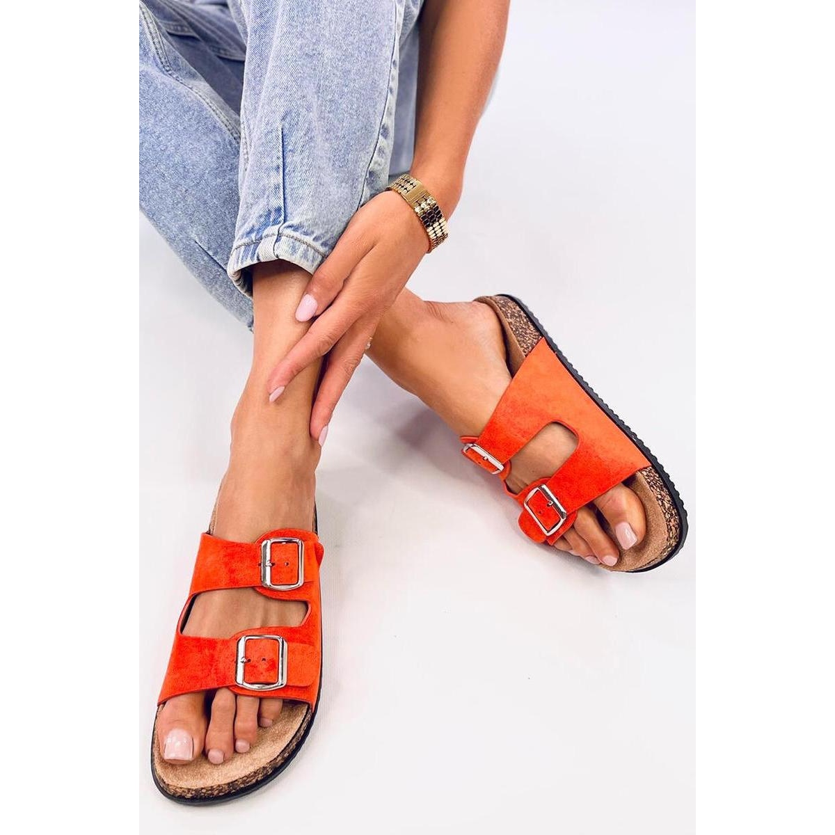 Objevte perfektní letní obuv s ponosy sandálů Cork Claps v jedinečném oranžovém odstínu! Tyto semišové pantofle z Inello jsou kombinací módního designu a pohodlí použití. Díky nastavitelným sponám je můžete snadno spojit s nohou, což z každého kroku potěší.