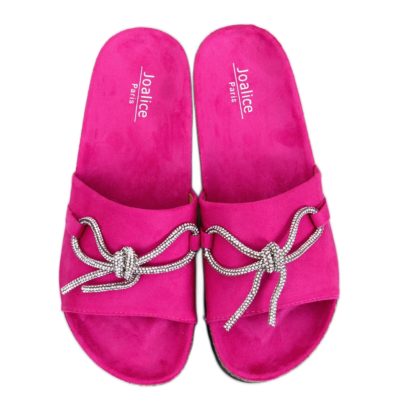 Objevte jedinečný pohodlí a styl s sandály Cork Claps s dietz zirkon v barvě fuchsie od značky Inello. Tito ženské pantofle jsou perfektní kombinací módního designu a praktičnosti. Semišový pás, zdobený stylovým lukem s lesklými kameny, dává botám jedinečné kouzlo a eleganci.