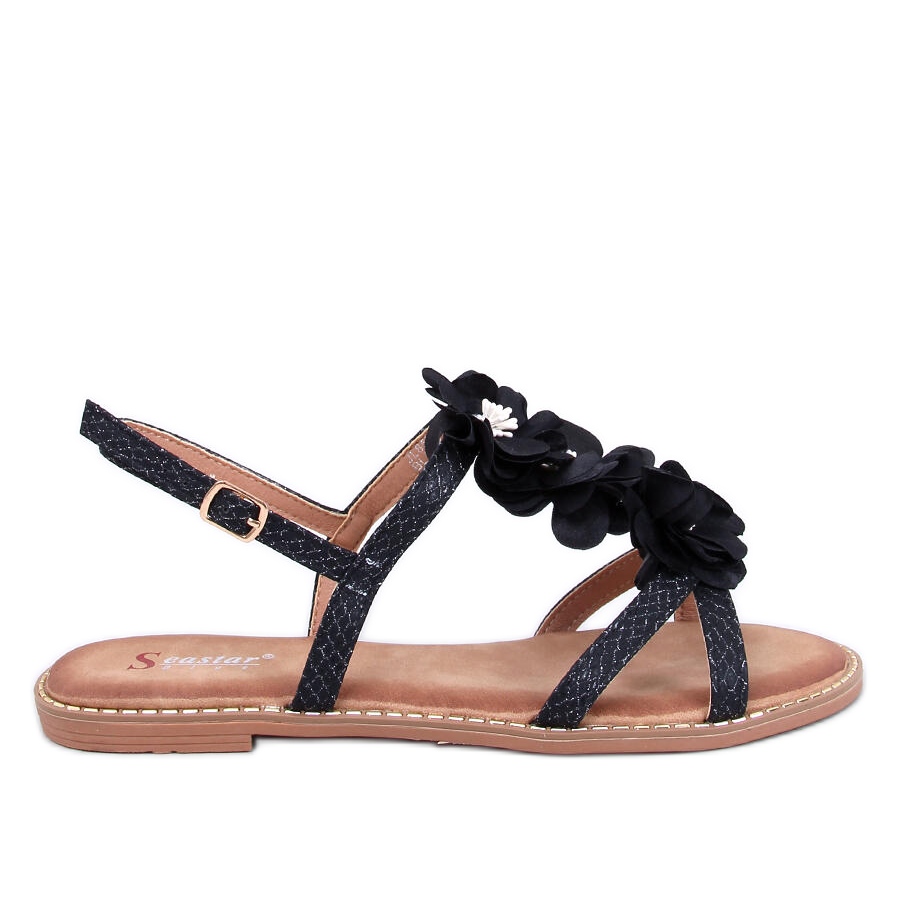 Inna marka Sandály Amaur Black s jemnými květy černá
