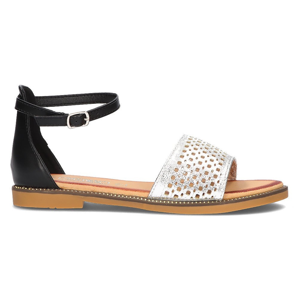 Sandály Filippo vyrobené z vysoce kvalitní ekologické kůže v černé a stříbrné barvě se vyznačují zapínáním na přezku, která umožňuje snadné přizpůsobení noze. Mají kulatý tvar špičky a plochý 1,5 cm vysoký podpatek, díky čemuž jsou extrémně pohodlné i při dlouhodobém nošení.