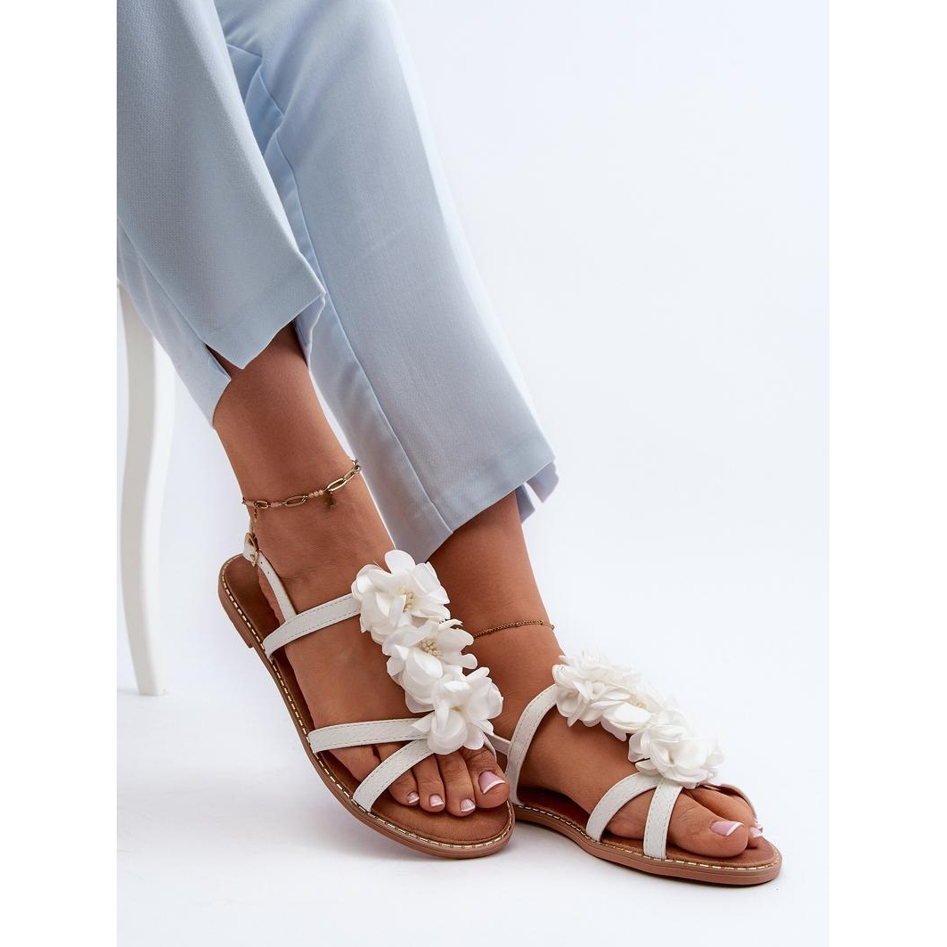 SANDALS MODEL ABIDIN JL85 WHITE - Krok ve stylu je perfektní volbou pro každou ženu, která si cení kombinace elegance a pohodlí. Tyto bílé sandály jsou vyrobeny z jemné, ekologické kůže, potěší jemné bleskové a květinové detaily, které jim dávají lehkost a ženskost.