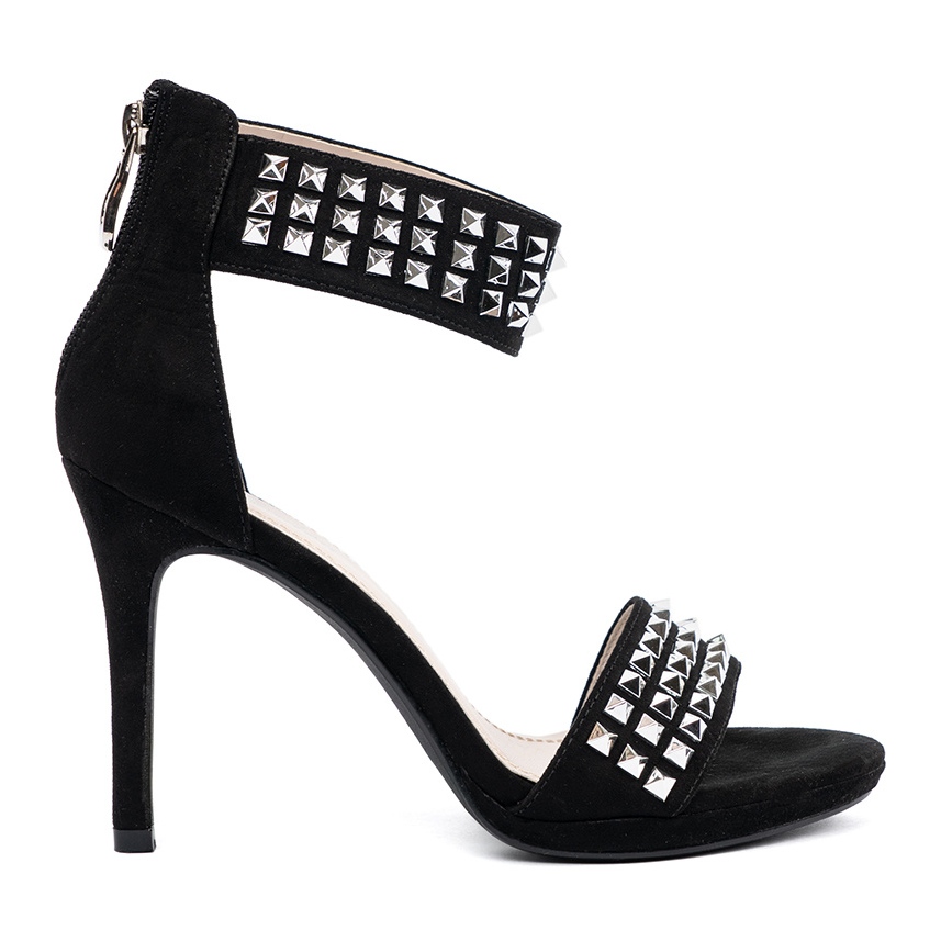 Shelvt Sandály na černém kolíku se zirkony černý