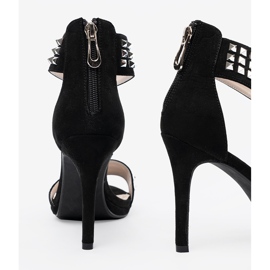 Shelvt Shelvt Sandály na černém kolíku se zirkony černá