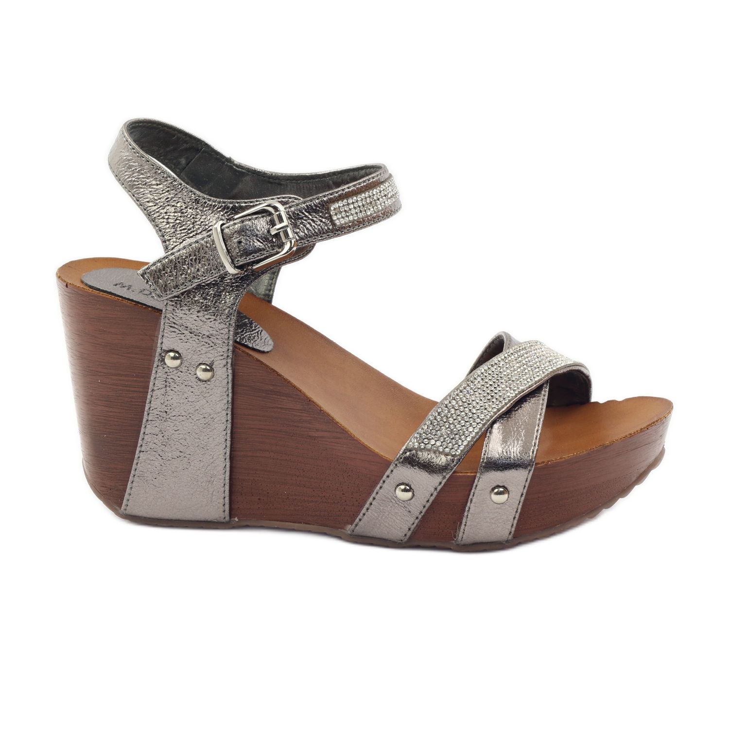 M.Daszyński M.Daszyński Sandály na klínku Daszyński s kubickými zirkony šedá