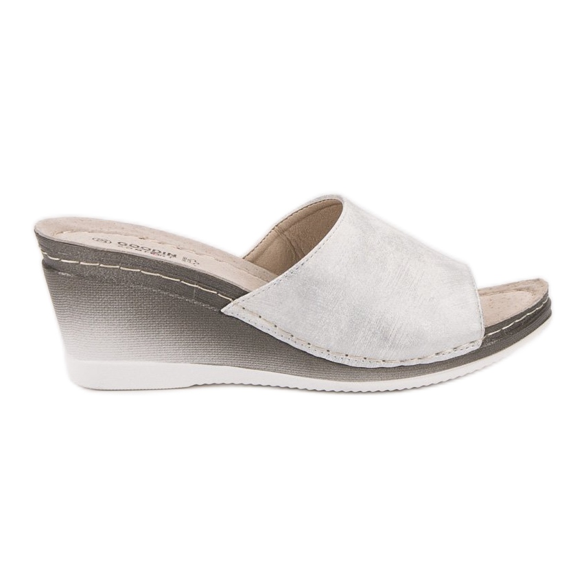 Objevte eleganci a pohodlí s bílými klínovými mules Goodin! Tyto módní boty jsou perfektní volbou pro každou ženu, která si chce přidat pár centimetrů a zároveň se cítit pohodlně po celý den. Díky nárůstu o 8 cm tyto žabky skvěle opticky prodlouží nohy a vypadají skvěle na každém kroku.