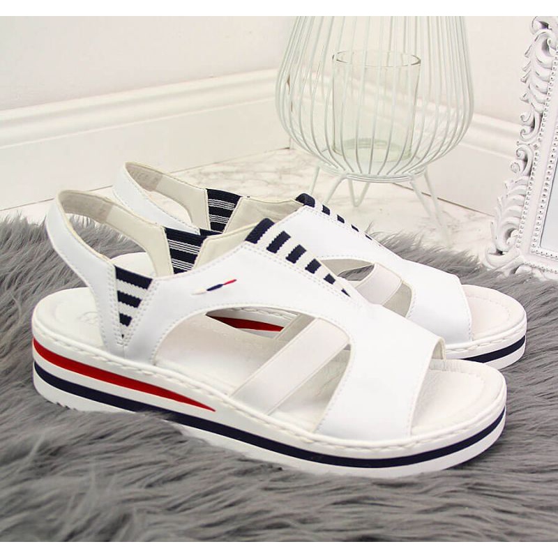 Rieker Sandály na klínku Rieker W V02Y5 bílé bílý