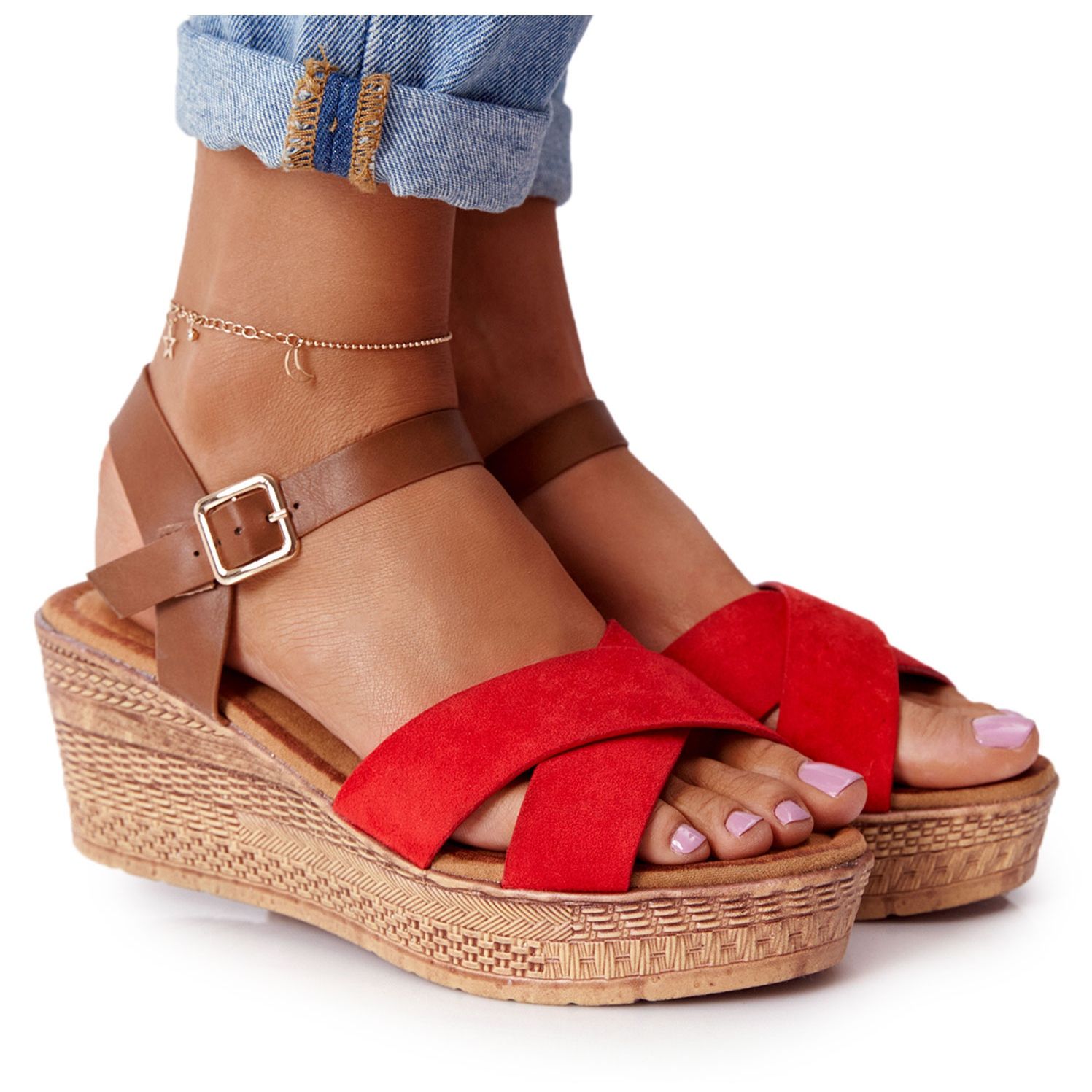 S.Barski S.Barski Sandály na klínku S. Barski GD-38 Red hnědý červené