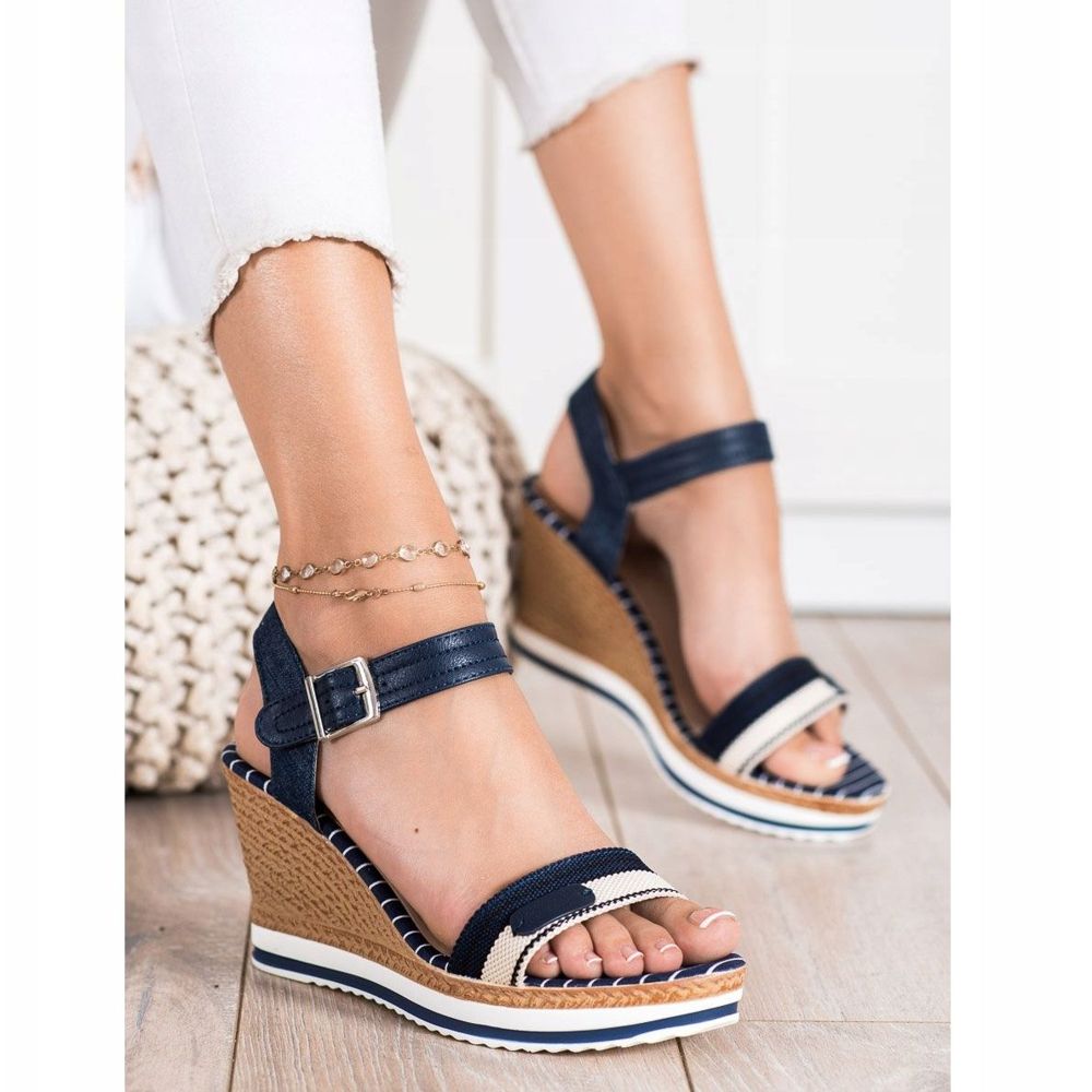 SHELOVET SHELOVET Sandály na klínku námořnická modrá