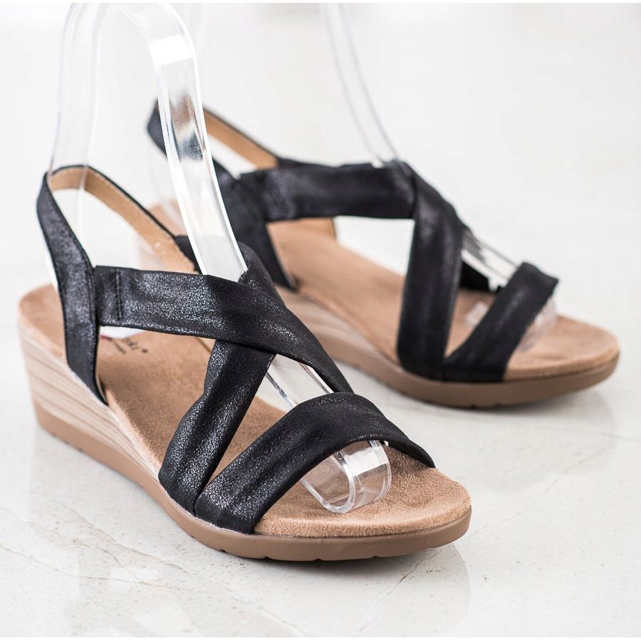 Objevte výjimečný komfort a styl s nazouvacími sandály na klínku od výrobce S. BARSKI. Tyto elegantní černé sandály jsou perfektní volbou pro ženy, které oceňují kombinaci módního designu a pohodlí.