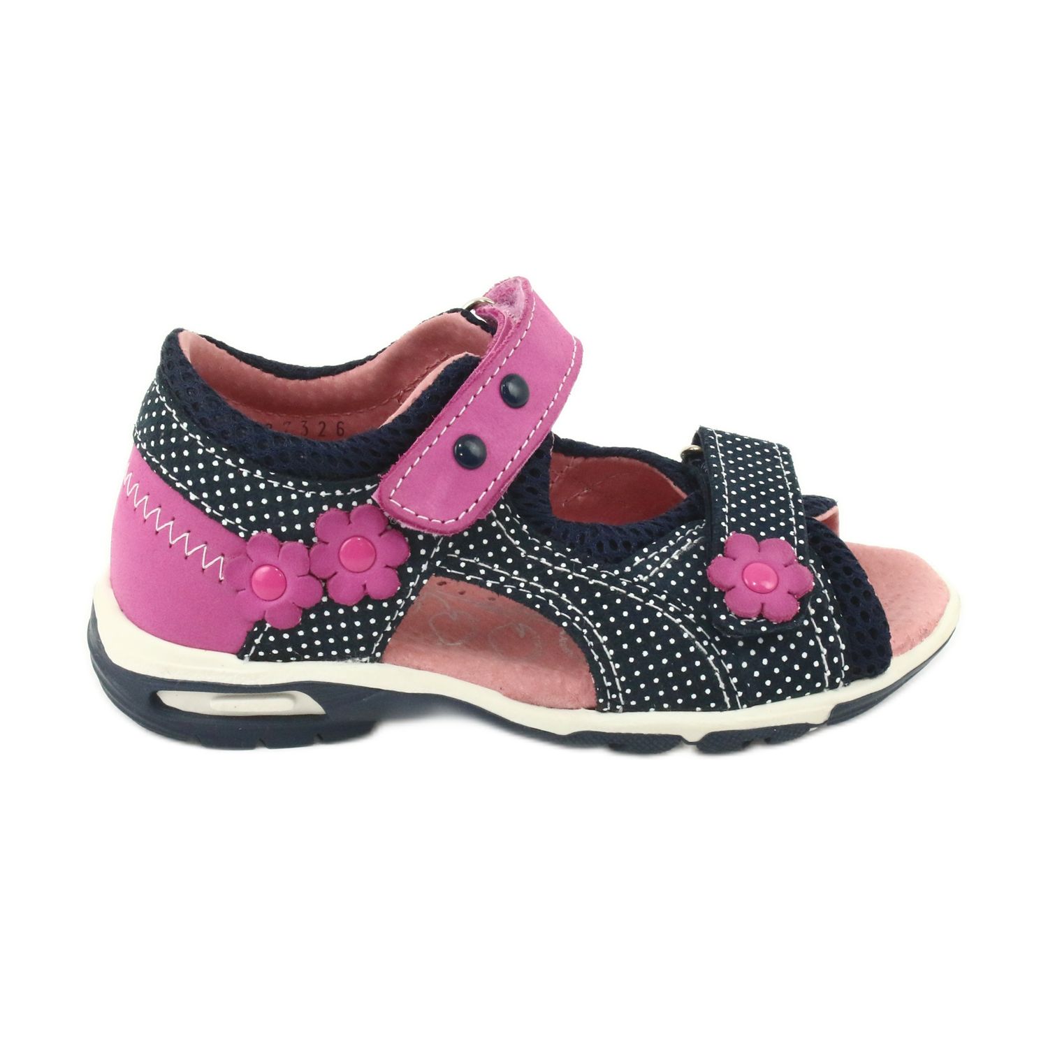 Tyto okouzlující sandály jsou dostupné ve dvou barvách: tmavě modrá a růžová, zdobené malými bílými tečkami a ozdobami v podobě růžových květů. Díky zapínání na suchý zip se dají snadno přizpůsobit dětské noze, což zvyšuje komfort používání. Pevná pata poskytuje dostatečnou stabilizaci a díky profilované stélce sandály dokonale padnou anatomii nohy.