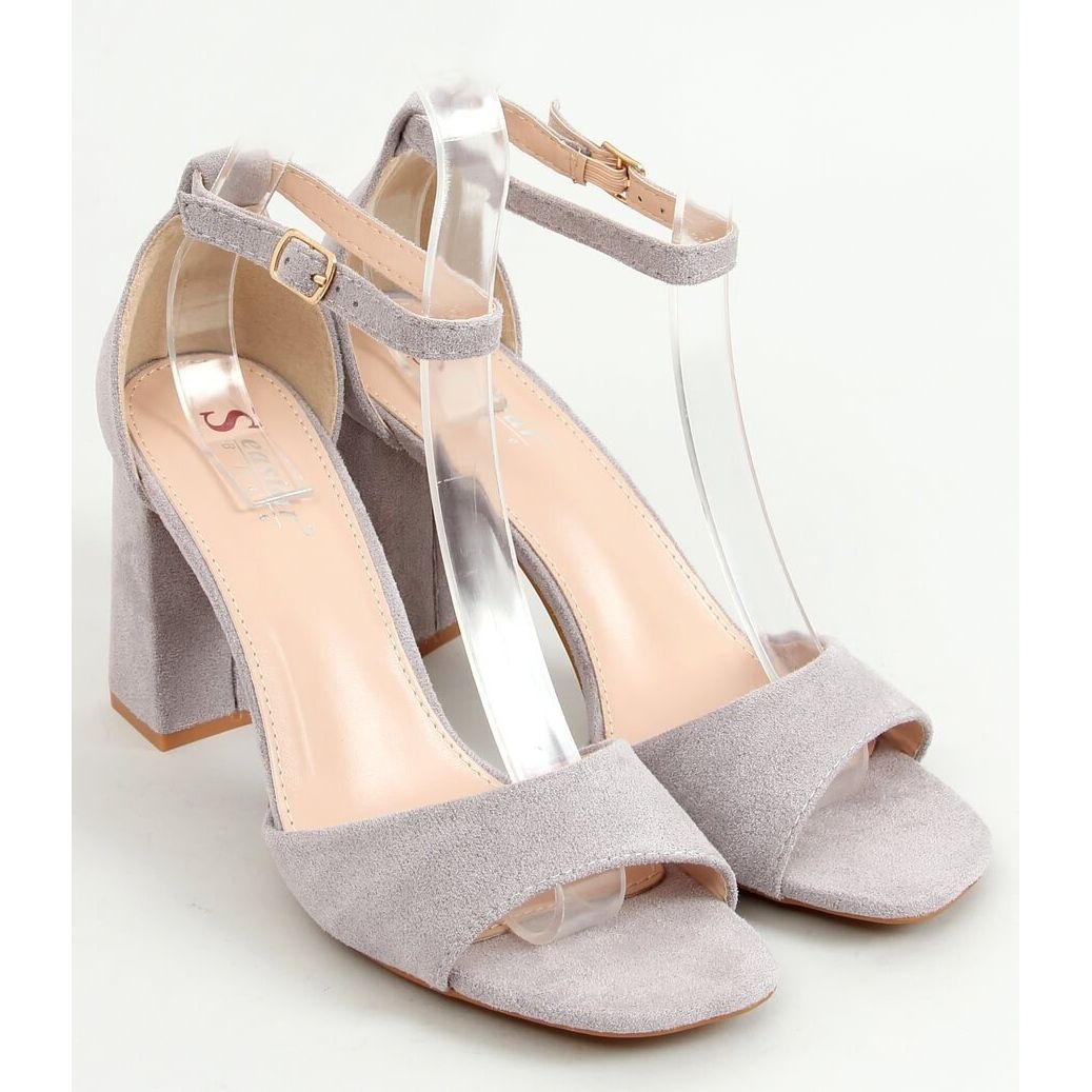 Inna marka Sandály s hranatými podpatky, šedý semiš TU173P Šedá