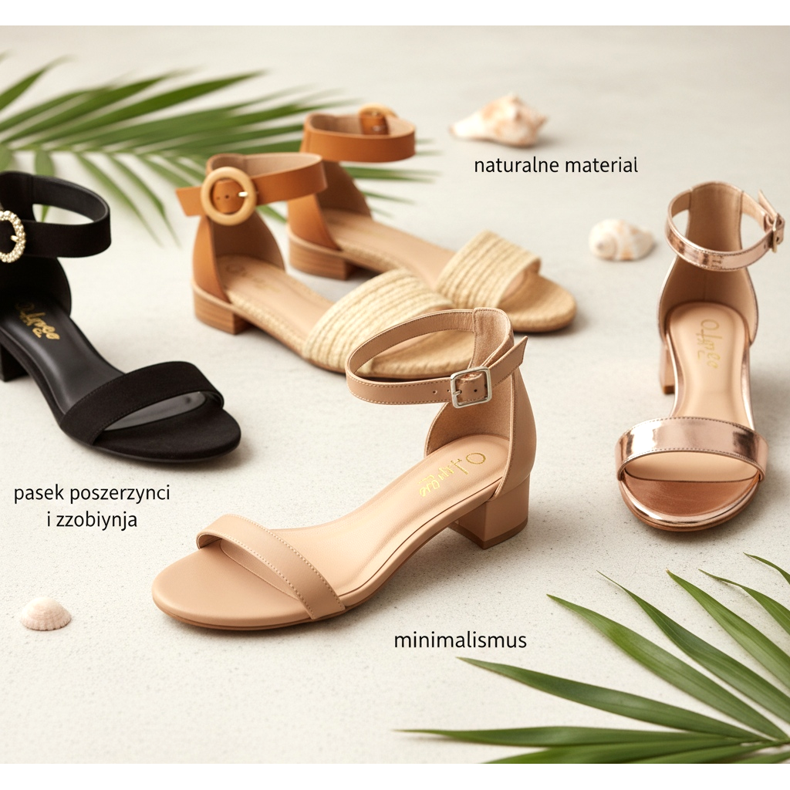 V sezóně léto 2026 jsou sandály s páskem kolem kotníku dostupné v desítkách verzí: vysoký podpatek, vysoký podpatek, klínek a plochá podrážka. Módní jsou verze s jedním popruhem a verze s několika příčnými popruhy (styl gladiátor). Dominantními materiály jsou přírodní kůže, semiš a ekologické náhražky, dále rafiové prošívání a juta v souladu s trendem přirozeného letního vzhledu.