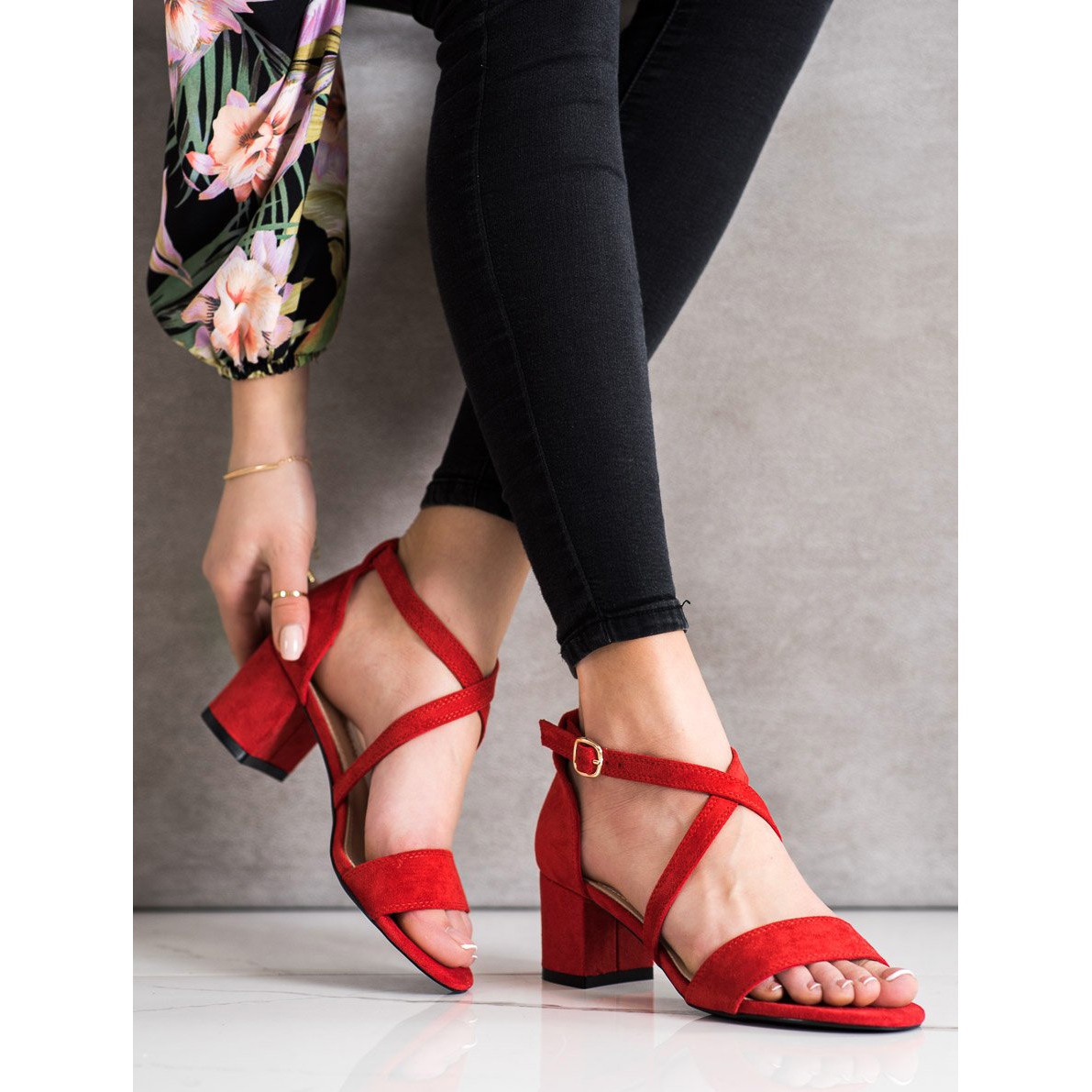 Páskové sandály Sergio Leone ve šťavnaté červené barvě jsou perfektní volbou pro letní dny. Tyto elegantní dámské boty, vyrobené výhradně z materiálu imitujícího semišovou kůži, spojují styl a pohodlí. Díky otevřené špičce a vestavěné patě jsou ideální jak na večerní výlety, tak na oslavy.