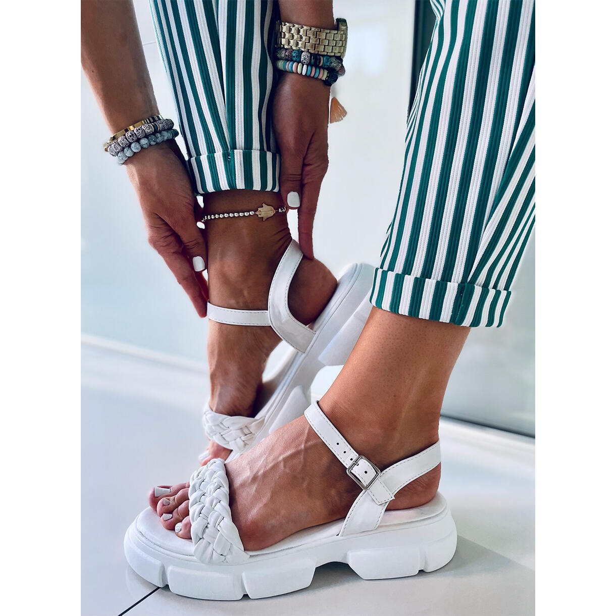 Sandály Shanti White s vysokou podrážkou jsou perfektní volbou pro ženy, které chtějí spojit módní design s výjimečným pohodlím. Tyto bílé sandály vyrobené z jemné ekokůže jsou stylové a zároveň šetrné k životnímu prostředí. Masivní 4 cm vysoká platforma jim dodává charakter a zároveň zajišťuje komfort nošení po celý den.