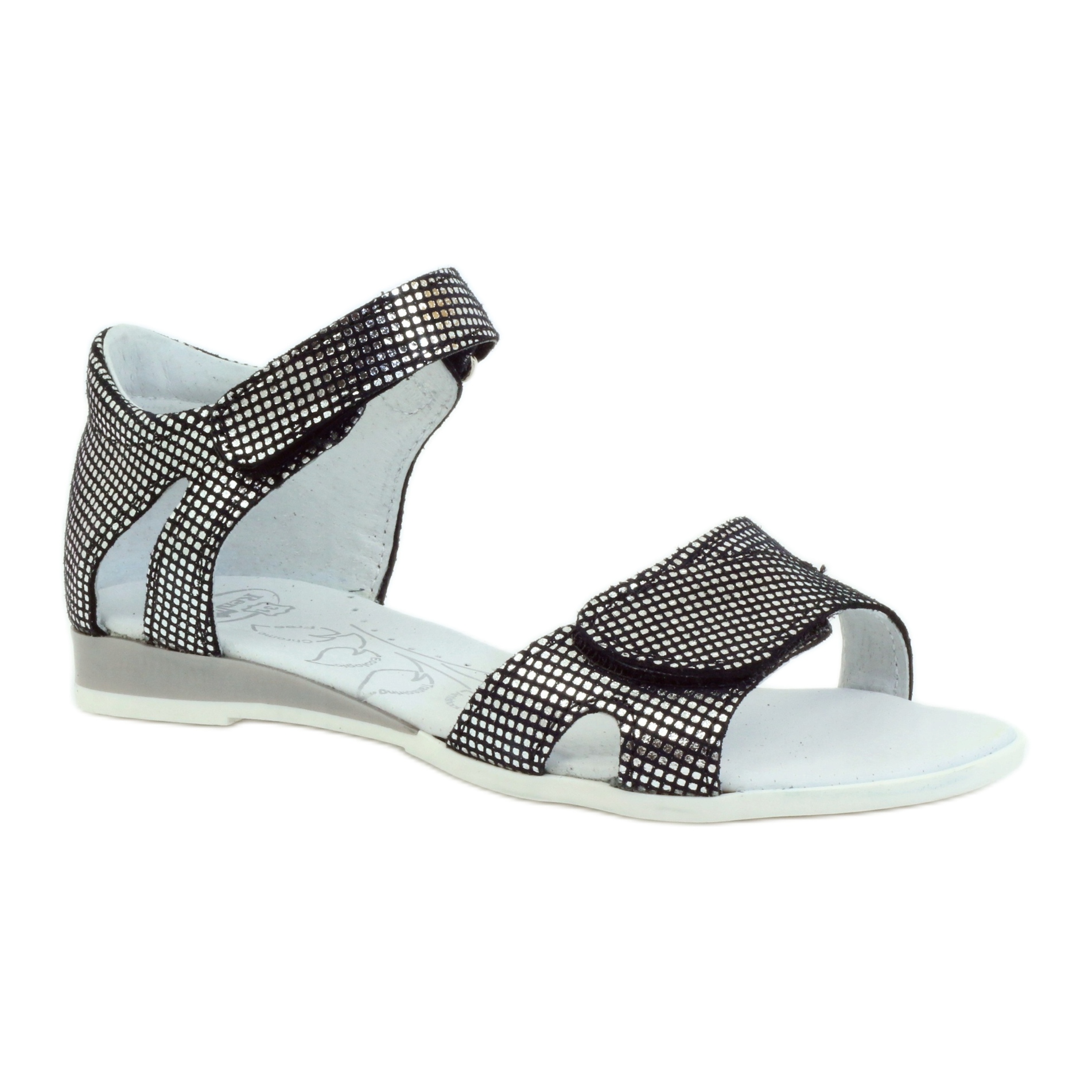Boty zapínané na suchý zip zaručují rychlé a snadné nazouvání, což jistě ocení jak děti, tak jejich rodiče. Sandály jsou vybaveny tuhou patou, která stabilizuje chodidlo, a profilovaná stélka z přírodní kůže zušlechtěné ionty stříbra zvyšuje komfort nošení tím, že zabraňuje rozvoji mikroorganismů a nepříjemných pachů.