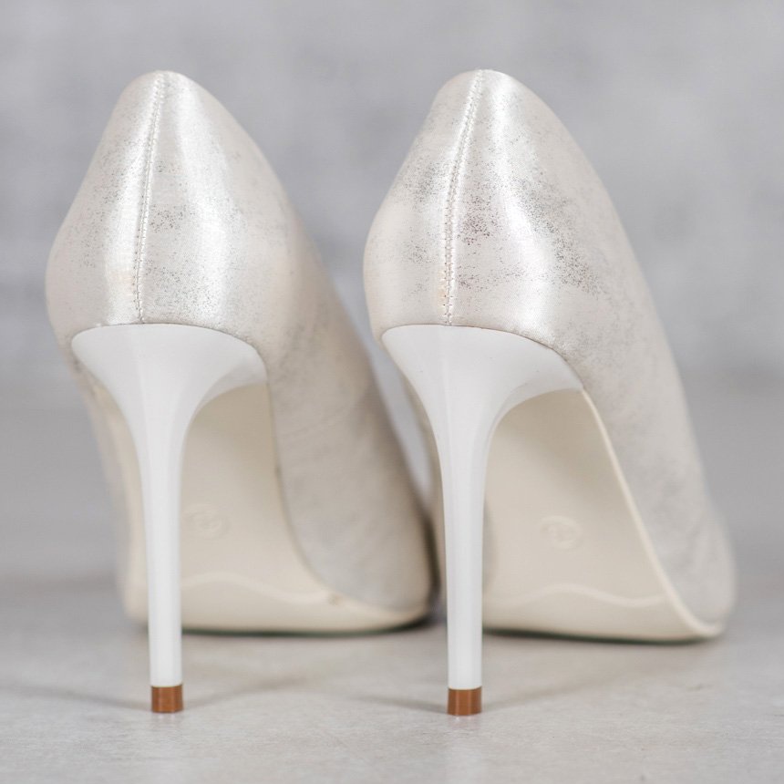 Hledáte dokonalé lodičky na podpatku, které podtrhnou vaši ženskost a dodají styl každému stylu? Saténové vysoké podpatky SHELOVET v metalické bílé jsou perfektní volbou pro každou elegantní ženu. Tyto boty vyrobené z nejkvalitnější ekologické kůže spojují pohodlí a estetiku.