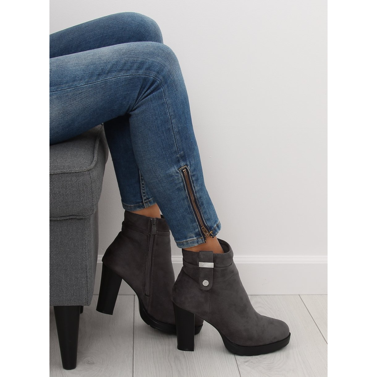 Představujeme kotníkové boty na podpatku v elegantním odstínu šedé - model BK3233 Grey. Tyto dámské kotníkové boty vyrobené z ekologického semiše kombinují styl a funkčnost a skvěle doplní váš každodenní nebo elegantní styl.