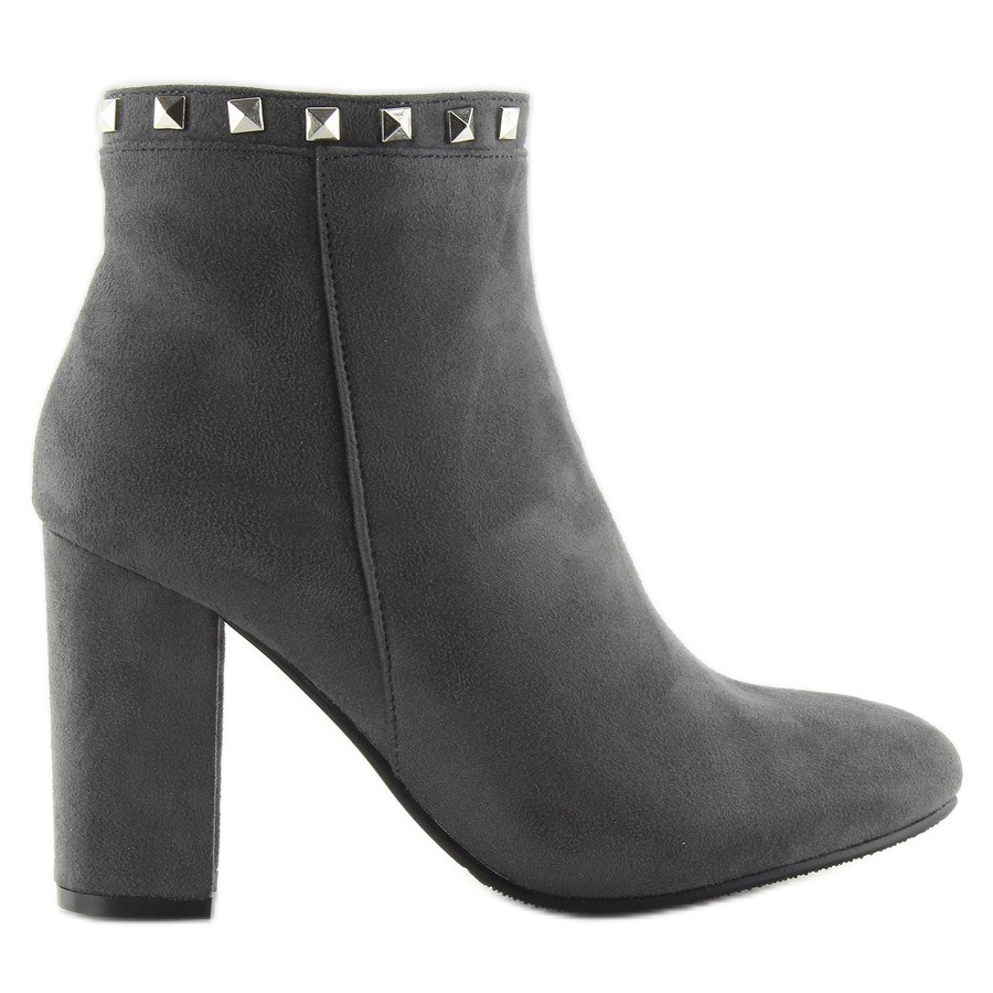 Objevte jedinečné kotníkové boty na vysokém podpatku s cvočky v elegantním odstínu šedé, které budou dokonalým doplňkem vašeho šatníku! Tyto klasické dámské kotníkové boty kombinují styl a pohodlí a stabilní 9 cm blokový podpatek vám umožní užívat si pohodlí i během dlouhého dne.