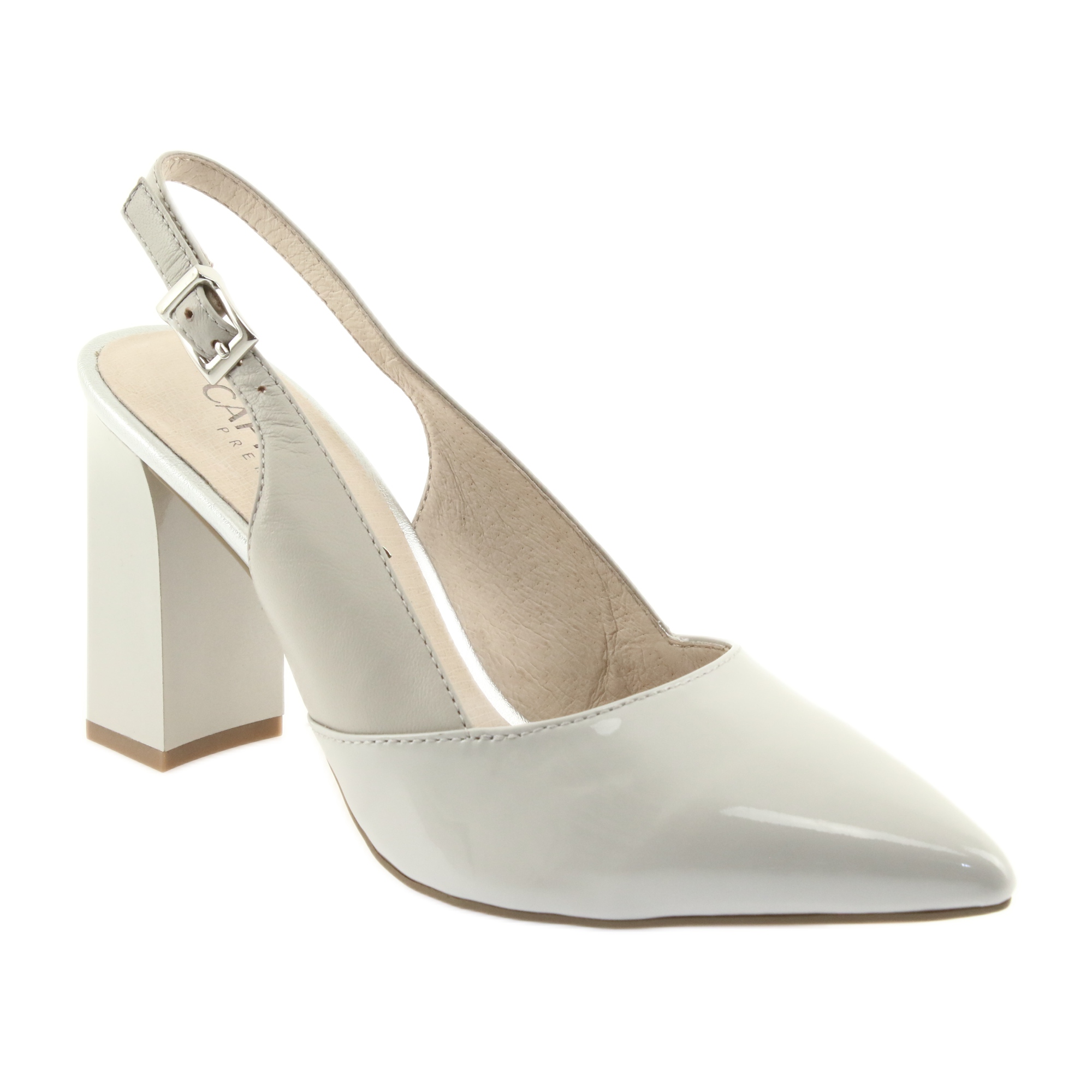 Vysokou kvalitu těchto bot podtrhuje kožená stélka, která zaručuje mimořádný komfort nošení. Výška podpatku 8,5 cm dodává siluetě štíhlou postavu a zároveň umožňuje volný pohyb po celý den. Tyto sandály mají klasický střih a elegantní špičatou špičku, která ještě více zdůrazňuje jejich nadčasový charakter.