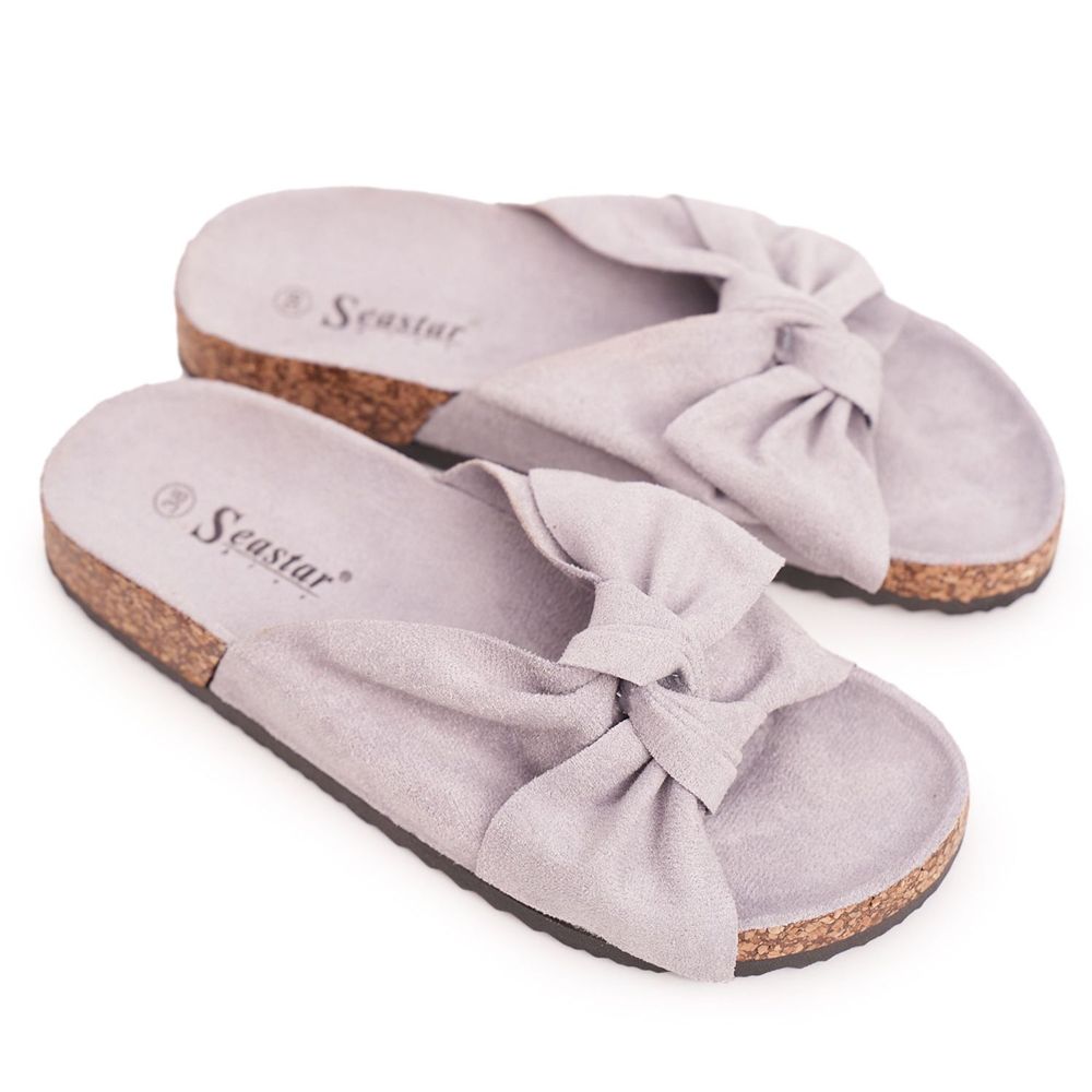 PB2 PB2 Šedé dětské pantofle na korku Little Wendy šedá