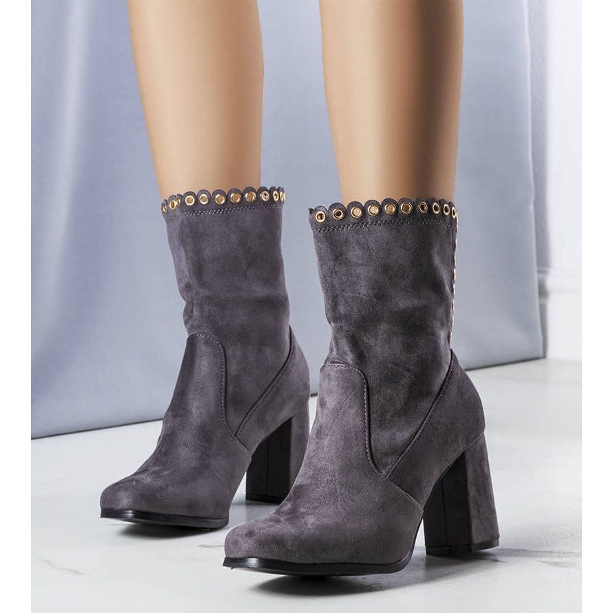Šedé boty na Post Ellianna - elegance a pohodlí pro chladnější dny. Klasický kulatý nos kombinovaný s pevnou patou, jako je post (8 cm), opticky tenčí postavu a horní dosah kotníku (asi 24 cm) dokonale harmonizuje kabátem, sukní nebo džíny. Dokončené jemnými drahokamy, které přidávají postavu k jakékoli stylizaci.