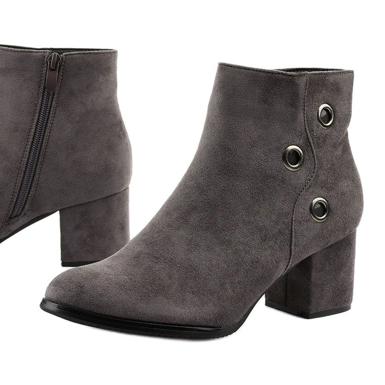 Podrobnosti: Šedé kozačky na sloupku z eko semiše A8163-3 / A šedá