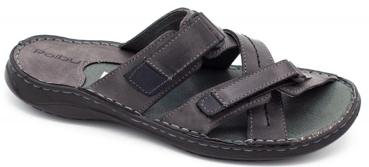 Pánské pantofle Polbut SA06 - šedé, pohodlné a praktické řešení pro léto. Sportovní, univerzální řez apeluje na muže všech věkových skupin, zkontroluje jak během prázdnin, tak i pohodlné domácí boty nebo na víkend. Vyrobeny výhradně z přírodní (vnější a vnitřní) kůže, poskytují příjemný pocit „chůze bosý“, zatímco izolují ze země. Profilovaná stélka udržuje stabilní nohy a světla vyrobená z vysoce kvalitního materiálu zaručuje pohodlí po celý den.