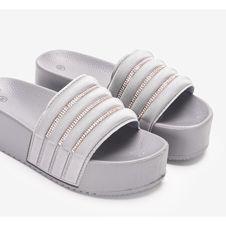 S přídavnými kamínky získávají tyto žabky elegantní charakter, takže je můžete nosit jak každý den, tak při zvláštních příležitostech. Šedá barva v kombinaci s šedou podrážkou z nich dělá extrémně univerzální a hodí se k mnoha letním stylům.