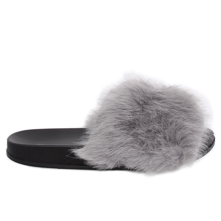 Inna marka Šedé pantofle s kožešinou CK107P Šedá