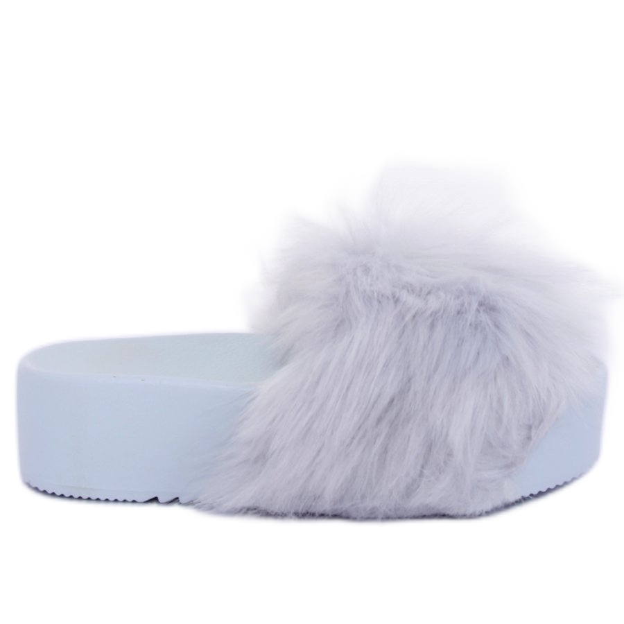 Podrobnosti: Šedé pantofle s kožešinou CK77P Grey II Quality šedá
