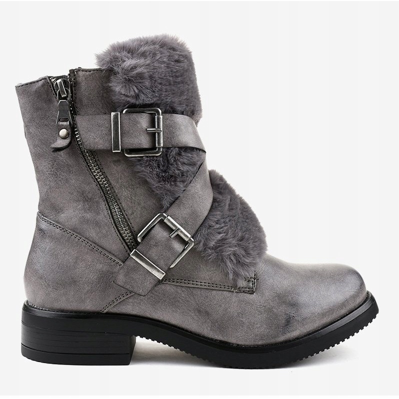 Inna marka Šedé ploché kozačky s kožešinou 1061A-PA šedá