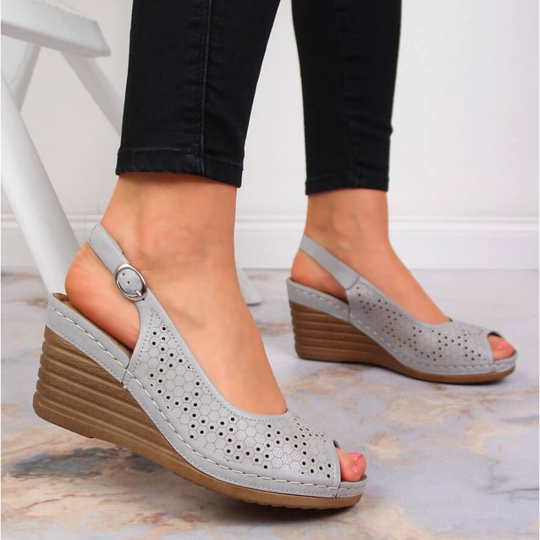 Netex Netex Šedé sandály na klínku eVento W EVE349C šedá