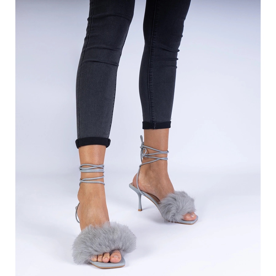 Inna marka Šedé sandály na patě s kožešinou šedá