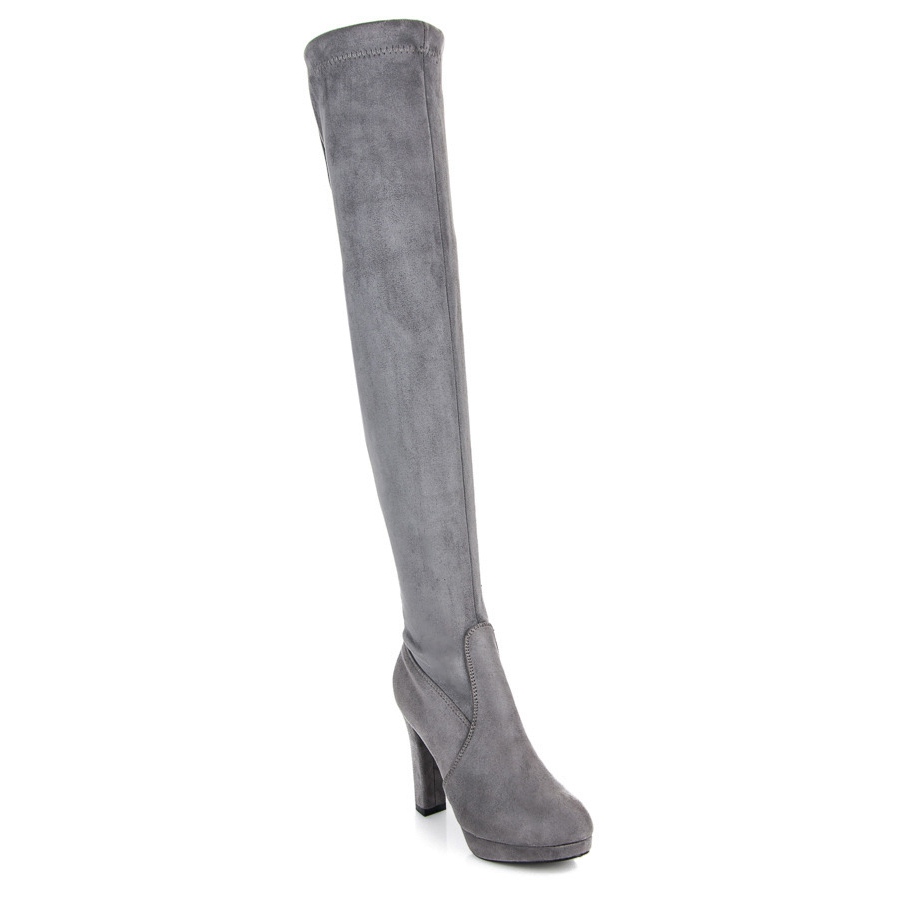 Podrobnosti: Vices Šedé semišové stehenní boty šedá