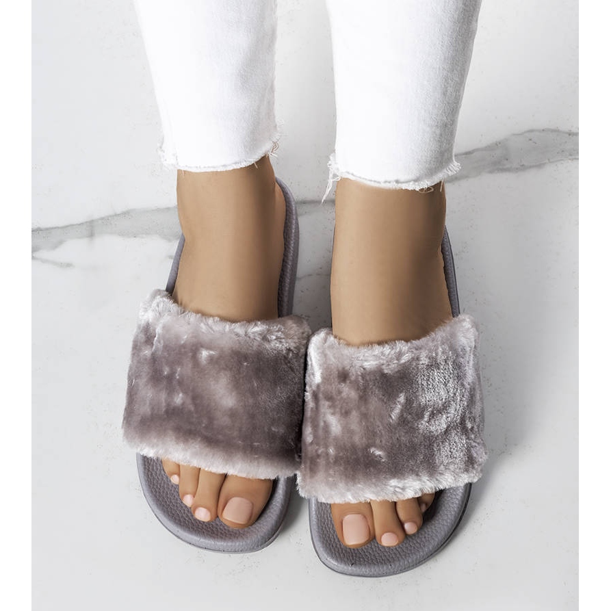 PA1 Šedé žabky Ivory s kožíškem – stylová kombinace pohodlí a elegance