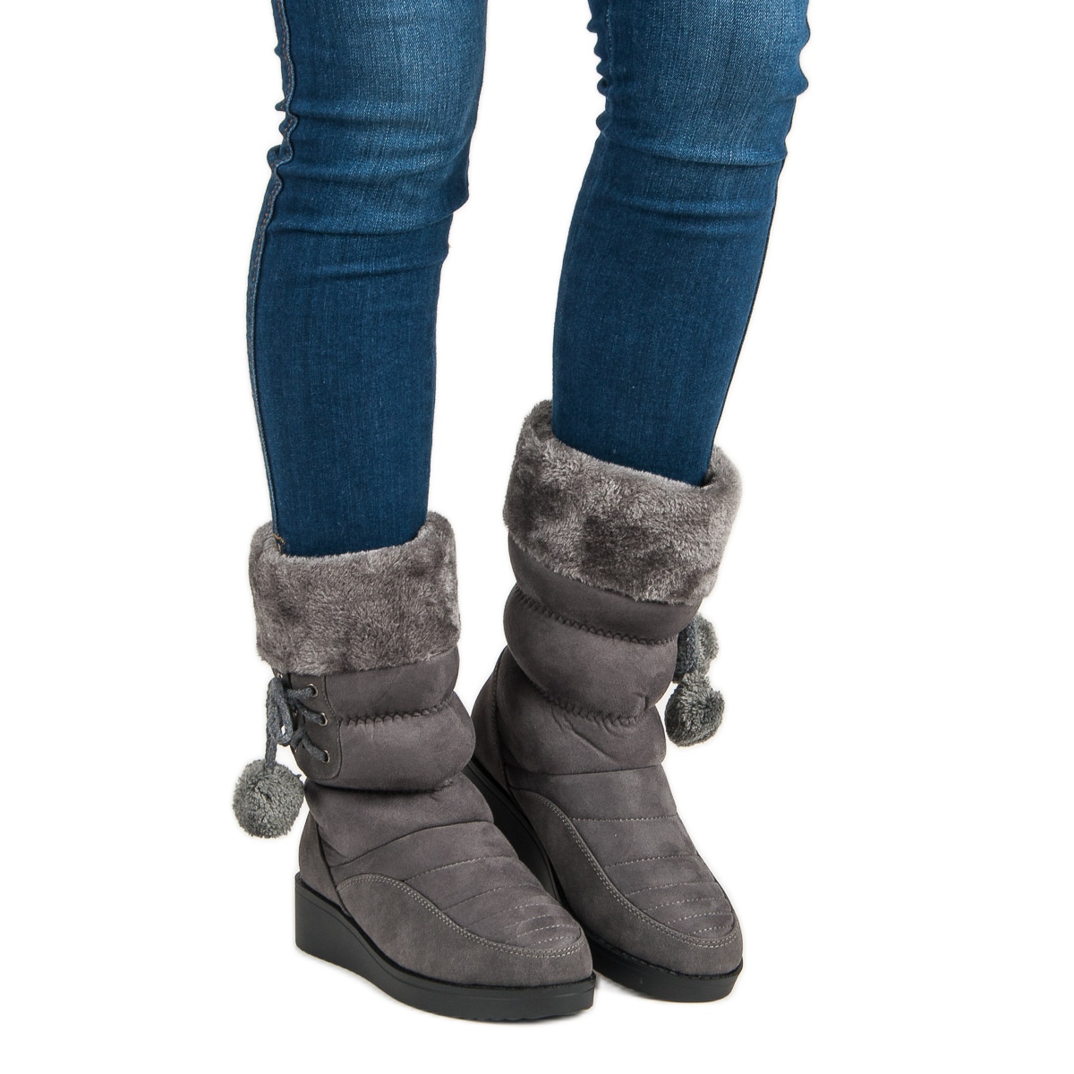 Navíc jedinečné designové prvky, jako jsou bambulky a kožešina na svršku, dodávají botám špetku svěžesti a jedinečného stylu, což z nich dělá skvělou volbu pro ženy, které si cení jak pohodlí, tak módního vzhledu. Jejich minimalistická šedá barva umožňuje jejich snadné kombinování s různými zimními outfity.