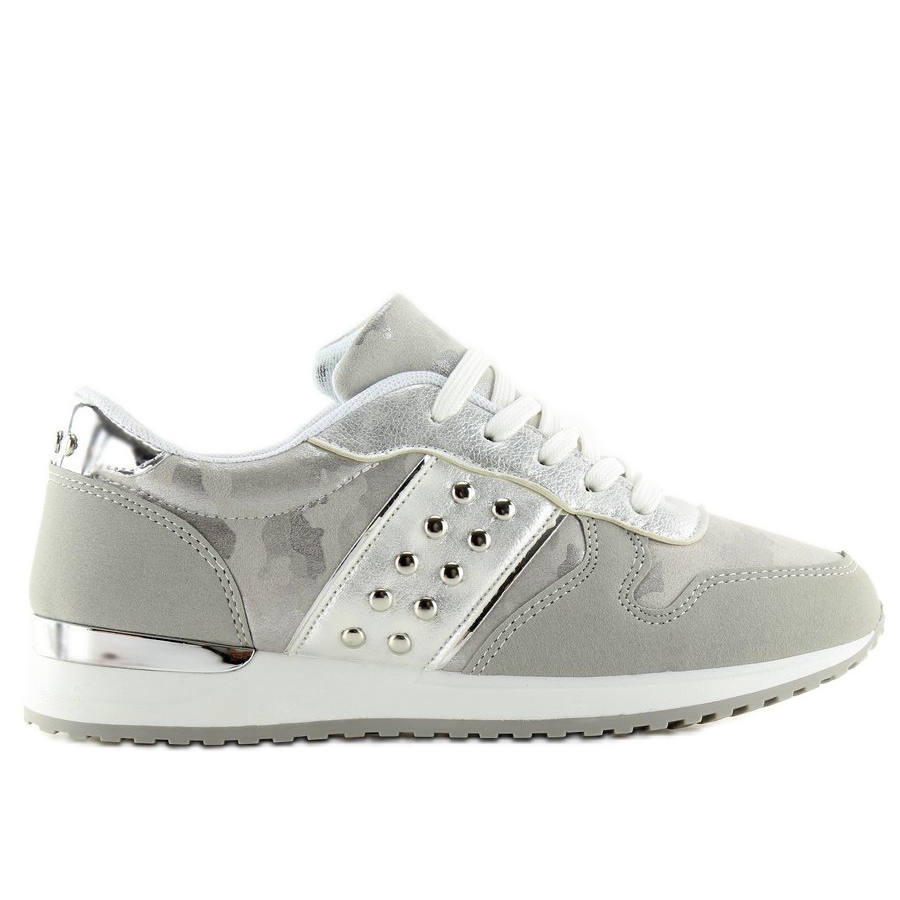 Šedé camo sportovní boty 6234 Silver jsou mimořádně stylovou volbou pro moderní ženy, které oceňují pohodlí a módní design. Tyto tenisky vynikají originální kombinací designu a oblíbených trendů, což z nich dělá hit sezóny. Charakteristický maskáčový vzor v jemném odstínu šedé přitahuje pozornost a další prvky, jako jsou poutavé cvočky a zrcadlové vložky, dělají každý styling jedinečný.
