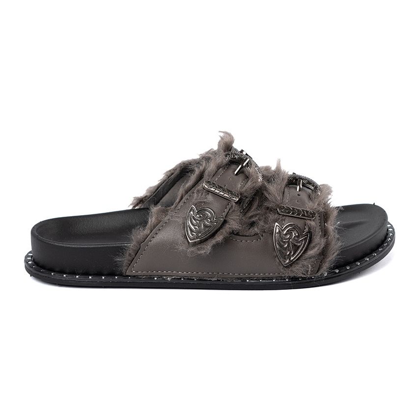 Shelvt Shelvt Šedé žabky s kožešinami a čepy šedá