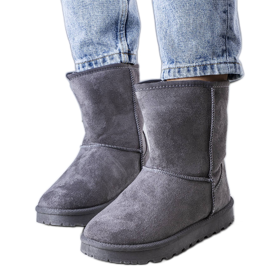 Klasické, vysoké sněhové boty jsou perfektní volbou pro chladné a každodenní stylizace. Horní vyrobená ze semišové ekologické kůže v univerzální šedé barvě jde dobře s neformálními bundy a džíny. Interiér skončil měkkou kožešinou poskytuje pohodlí a izolaci z chladu a gumová podešev s platformou poskytuje stabilitu a adhezi na kluzkých površích.