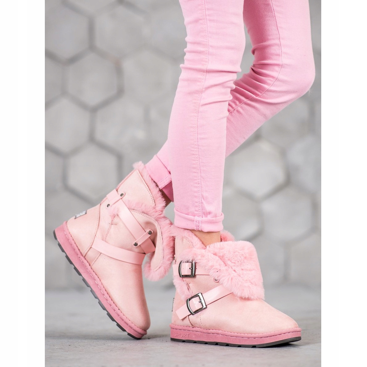 Mukluky vyrobené z ekologické semišové kůže v příjemném růžovém odstínu nejen skvěle vypadají, ale také zajistí pohodlí vašim nohám. Vnitřek bot je podšitý látkou a zatepleným obuvnickým kožíškem, který zajišťuje skvělé zahřívání a měkkost při nošení. Další výhodou je ozdobná růžová kožešina na okrajích a ozdobné pásky s přezkami, které jim dodávají jedinečný charakter.