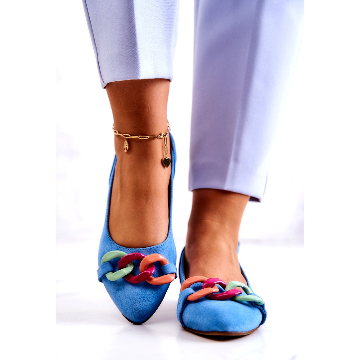 Lewski Shoes Lewski Shoes Semišové balerínky s řetízkem Lewski Boty 3125 Blue modrý vícebarevný