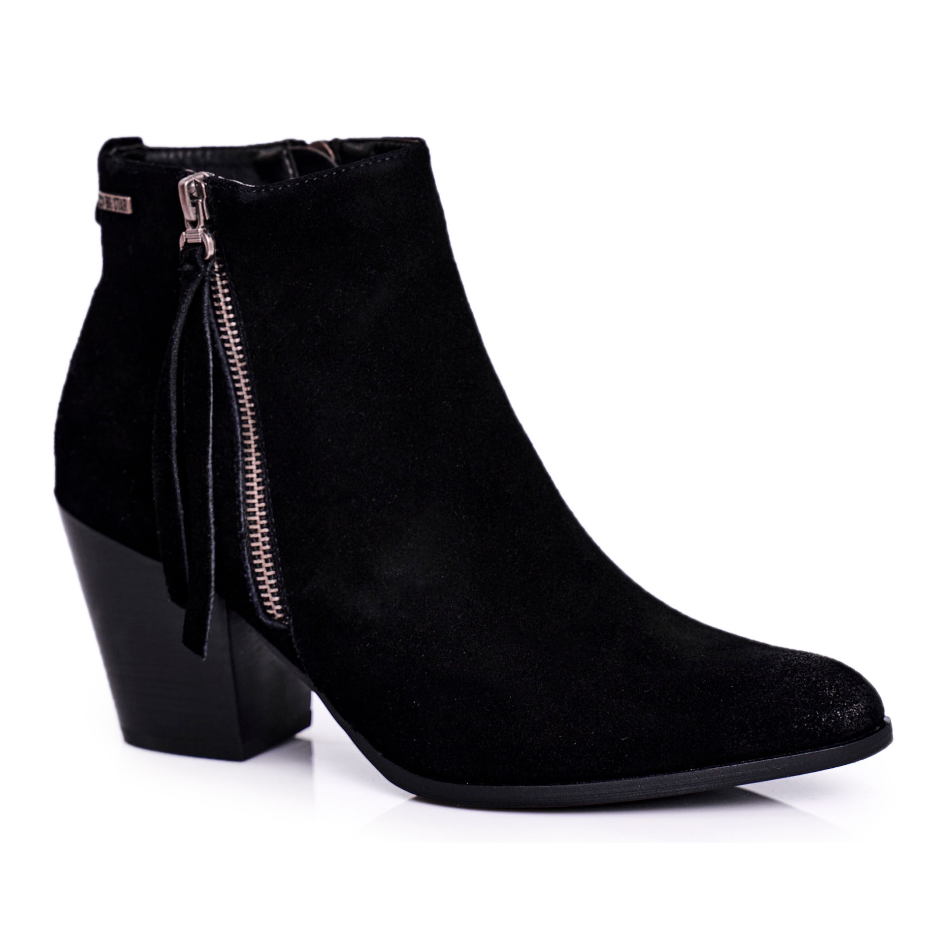 Černá barva kozaček se perfektně hodí do různých stylů, snadno se hodí jak ke kalhotám, tak k šatům. Stylové třásně dodávají celku jemný půvab a špičatá špička zdůrazňuje eleganci obuvi.