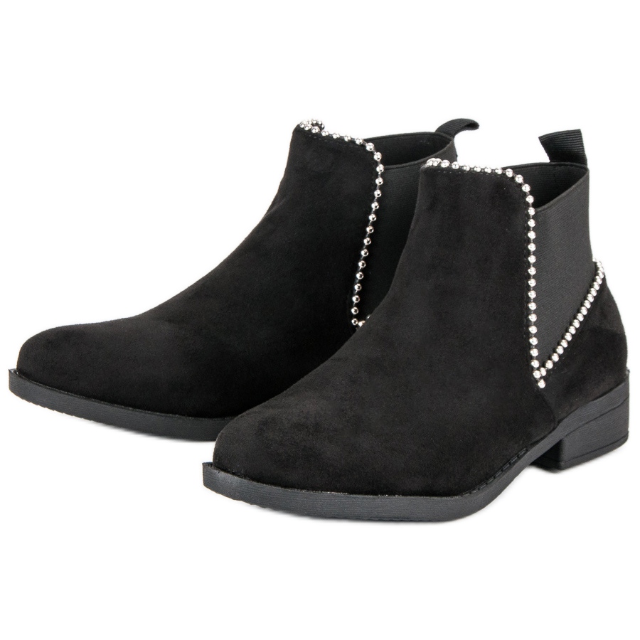Objevte dokonalost v klasice s našimi černými semišovými Chelsea botami, které kombinují pohodlí s módním designem. Tyto elegantní boty s plochou podrážkou zdobené jemnými kamínky a originální gumičkou vzadu se skvěle hodí jak na každodenní nošení, tak na večerní vycházky.