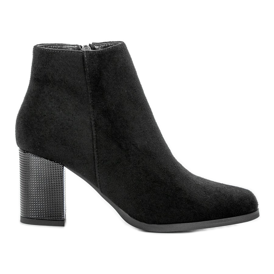 Představujeme černé kotníkové boty na podpatku od značky Filippo, perfektní volba pro sezónu podzim/zima. Tyto elegantní boty vyrobené z ekologické semišové kůže kombinují styl s pohodlím. Jejich podpatek je vysoký 7,5 cm, přidává na výšce a zeštíhluje postavu. Jemný vzor na patě je decentní ozdobou a zateplení vnitřku udrží nohy v teple i v chladnějších dnech.
