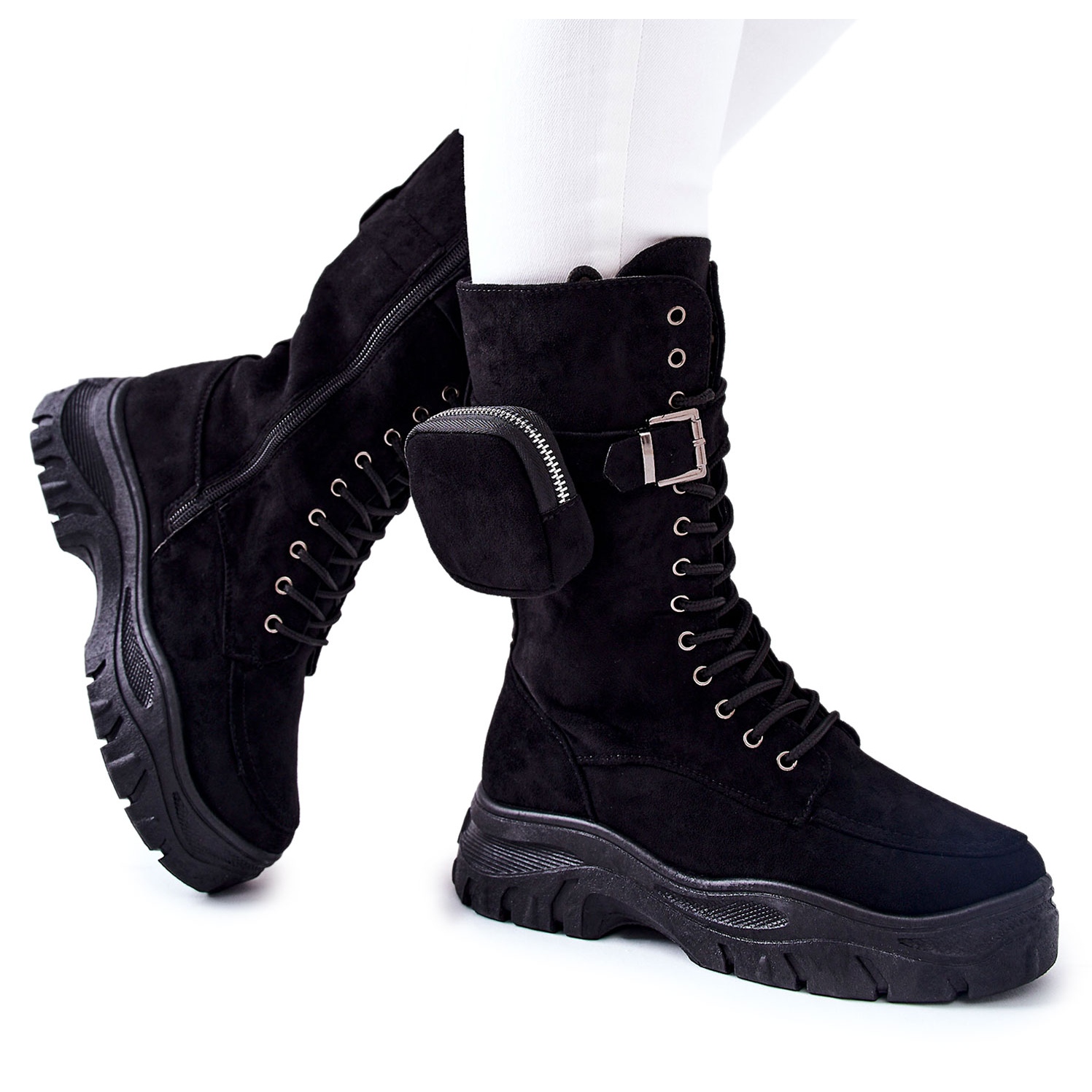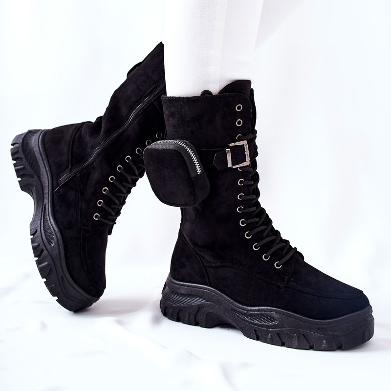 **Semišové boty na platformě s pasem Černá Issanti**